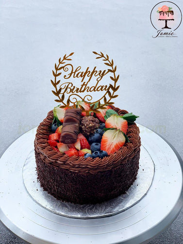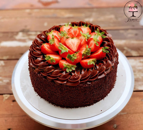 Ce gâteau tout chocolat est composé de quatre (3) couches de génoise chocolat et deux (2) couches de crème chocolat au beurre.